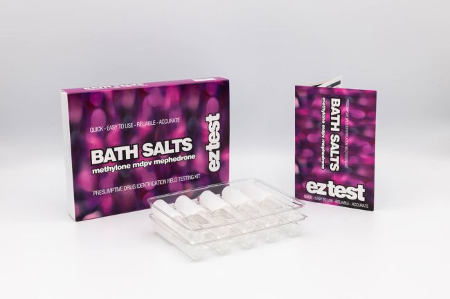 Das Bath Salts EZ Test Kit dient zum Nachweis einiger der am häufigsten erhältlichen synthetischen Cathinone, die häufig als Badesalze verkauft werden, darunter Mephedron (4-MMC), MDPV und Methylon (bk-MDMA). Er soll helfen, diese Gruppe von Substanzen durch einen einfachen präsumtiven Test zu identifizieren, insbesondere in Fällen, in denen synthetische Cathinone in Proben gefunden werden, die als andere Drogen wie Amphetamin, MDMA oder Kokain verkauft werden.