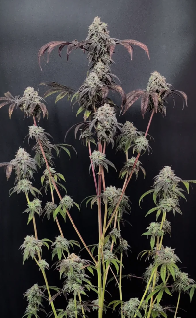 Garlic Mint Sherbet is a high-impact hybrid strain, conceived from Garlic Cookies and Sherbanger. It entices with a potent flavor profile that evolves from a sweet Sherbet to rich garlic, spice, and a hint of refreshing mint. Large, heavy flowers with dark hues and extensive trichome coverage signal top-tier quality. This strain boasts up to 32% THC, potential indoor yields of 550-650 g/m2, and impressive resin production, making it ideal for extraction purposes. The intense physical effects mark it perfect for relaxation or nighttime use. Best suited for growers with experience, it can reach heights of 150-220 cm.