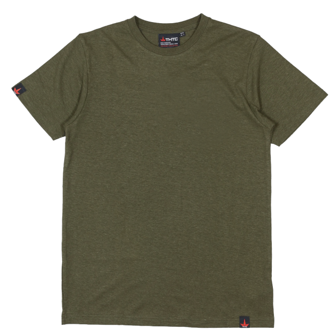 'Hemp Originals' Premium Weight Men's T-Shirt in Army Green without printed design is produced from a fine blend of 55% Organic Hemp with 45% Organic Cotton for a better environment.