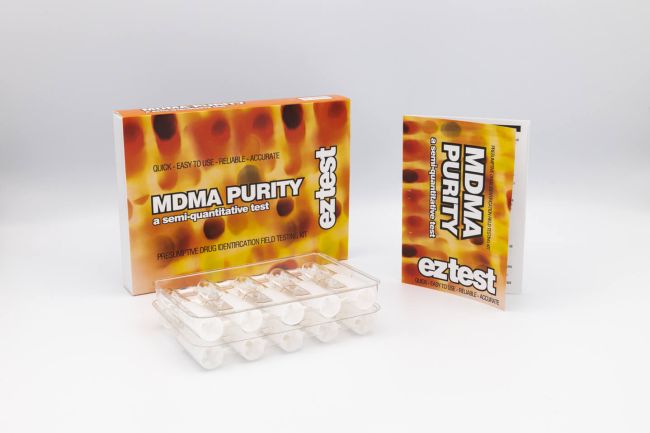 The MDMA Purity EZ Test Kit is designed to help identify whether a sample is MDMA and give an indication of its purity. Rather than simply showing the possible presence of MDMA, this kit is intended to provide a visual guide to the general quality of a sample and the possible level of cutting agents present. It does not provide a percentage purity, but instead gives an indication of whether the sample appears to fall within low, medium, or high purity levels.