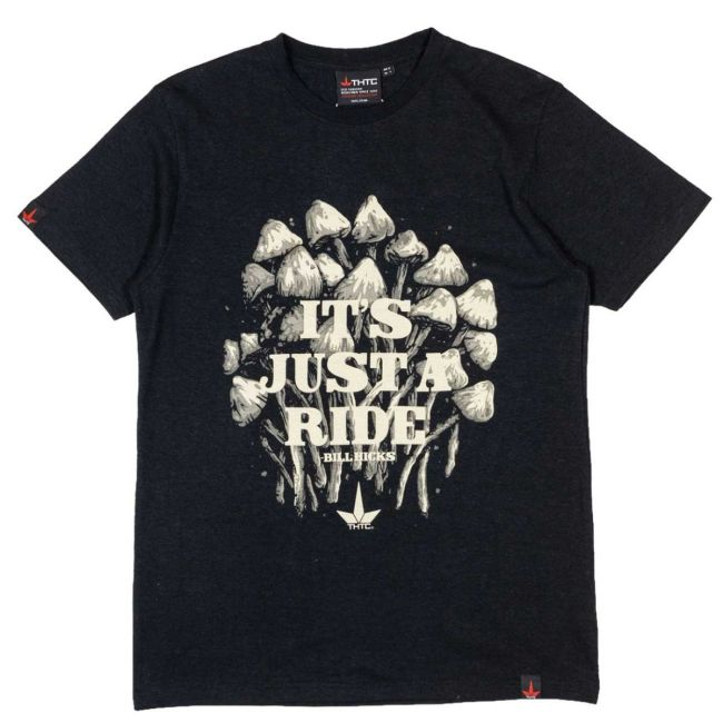 'Just A Ride' Premium Weight Men's T-Shirt in Black is produced from a fine blend of 55% Organic Hemp with 45% Organic Cotton for a better environment.